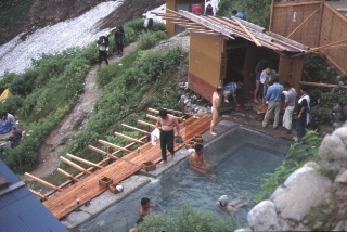 以前から、温泉のガイドブックを見るたびにいつか行ける日が来るだろうかと思っていましたが、意外に早く実現できました。 趣味の登山で、3000メートル級の第2弾として上った白馬岳(しろうま)の帰りのコースで入浴だけですができたのです。 シーズン真っ盛りだったので、宿泊すると畳1つに3人寝なくてはならず、宿泊は断念しましたが十分温泉は味わうことができました。
